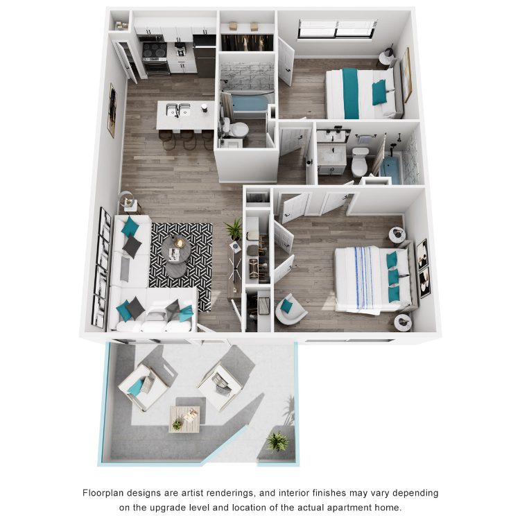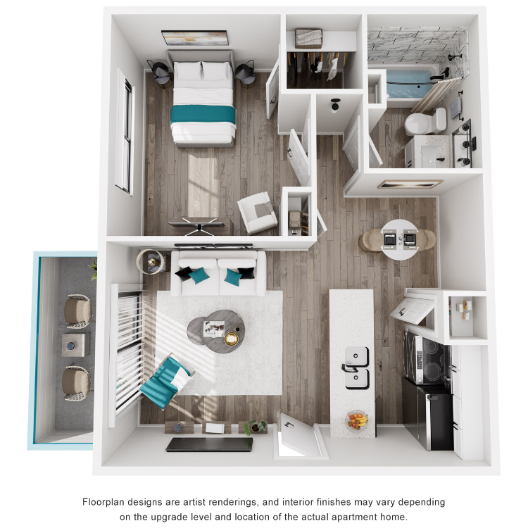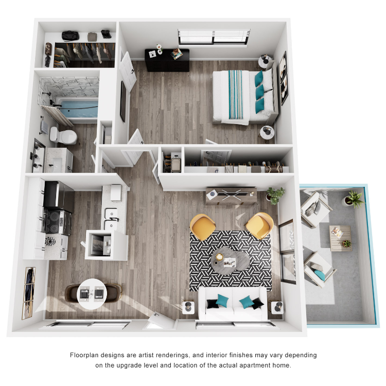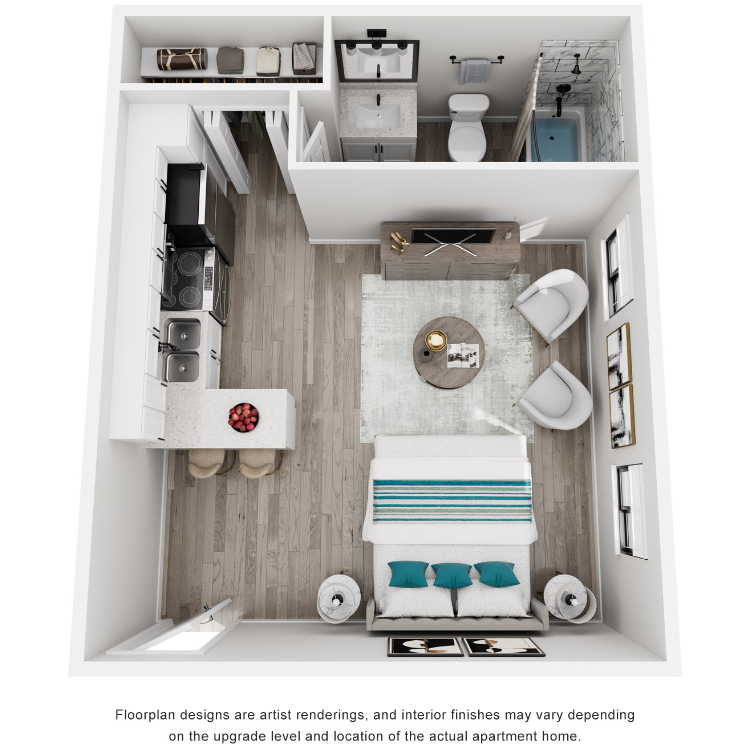 Note: Floorplan renderings and features vary per apartment home and floorplan type and upgrade level.